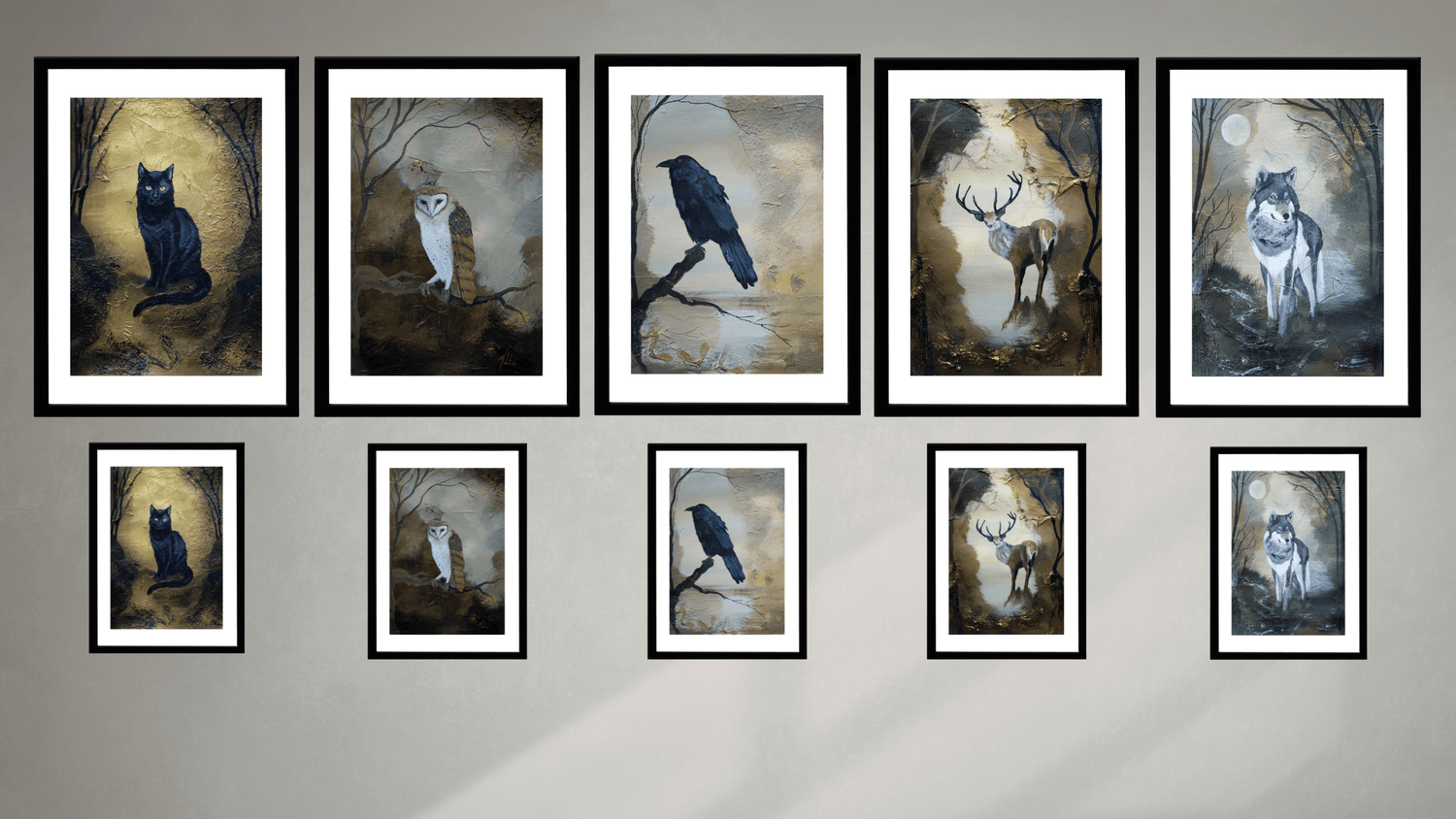 Full collection A4 prints on top row and A5 prints on bottom row
